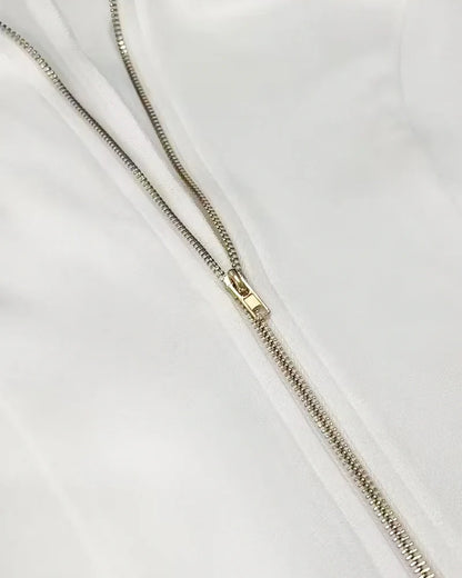 • Adjustable Full-Length Zipper — Offers versatility in neckline styling while creating a sleek, defined look.